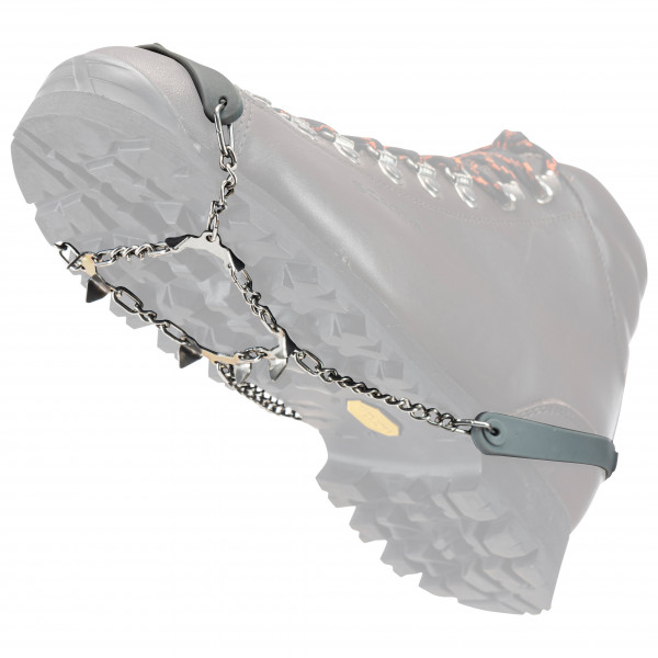 Non-skid device for footwear prevents the risk of accidental falls or slips on roads and icy terrain. Quick fit, optimal bond on any footwear and safe walk thanks to 8 steel spikes. The perfect companions for any event, city walk, free time and outdoor activity